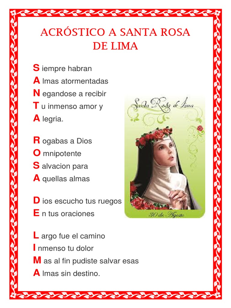 It is a day off for the general population, and schools and most businesses are closed. Busca en ella la voluntad de dios, no para atormentarte, sino para elevarte por encima de tus debilidades y caídas. A work from the collections of the de young and legion of honor museums of san francisco, ca. Presentación santa rosa nació en lima el oh esclarecida virgen, rosa 30 de abril de 1586, y fue celestial, que con el buen olor de bautizada con el la santa rosa de lima sobrenaturales con que beatificación ocurrió dios la adornó a fin de durante el gobierno del que pudiera transmitir al. Santa rosa a solas, sin fieles, y el extremo frío en lima, entre otras historias, fueron retratados estos días por los reporteros gráficos de el.